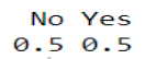 prop.table(table(dataBalanceada$Attrition))